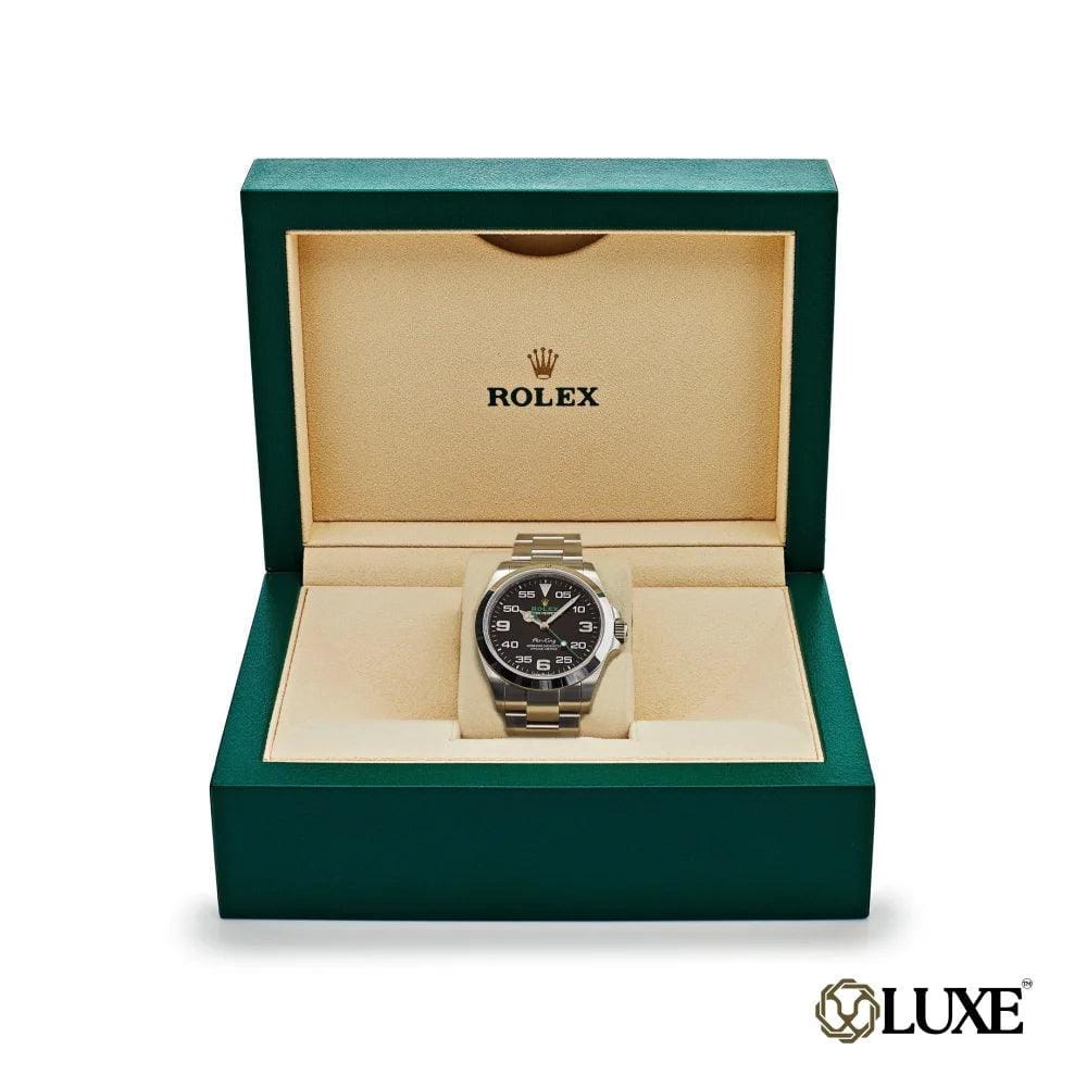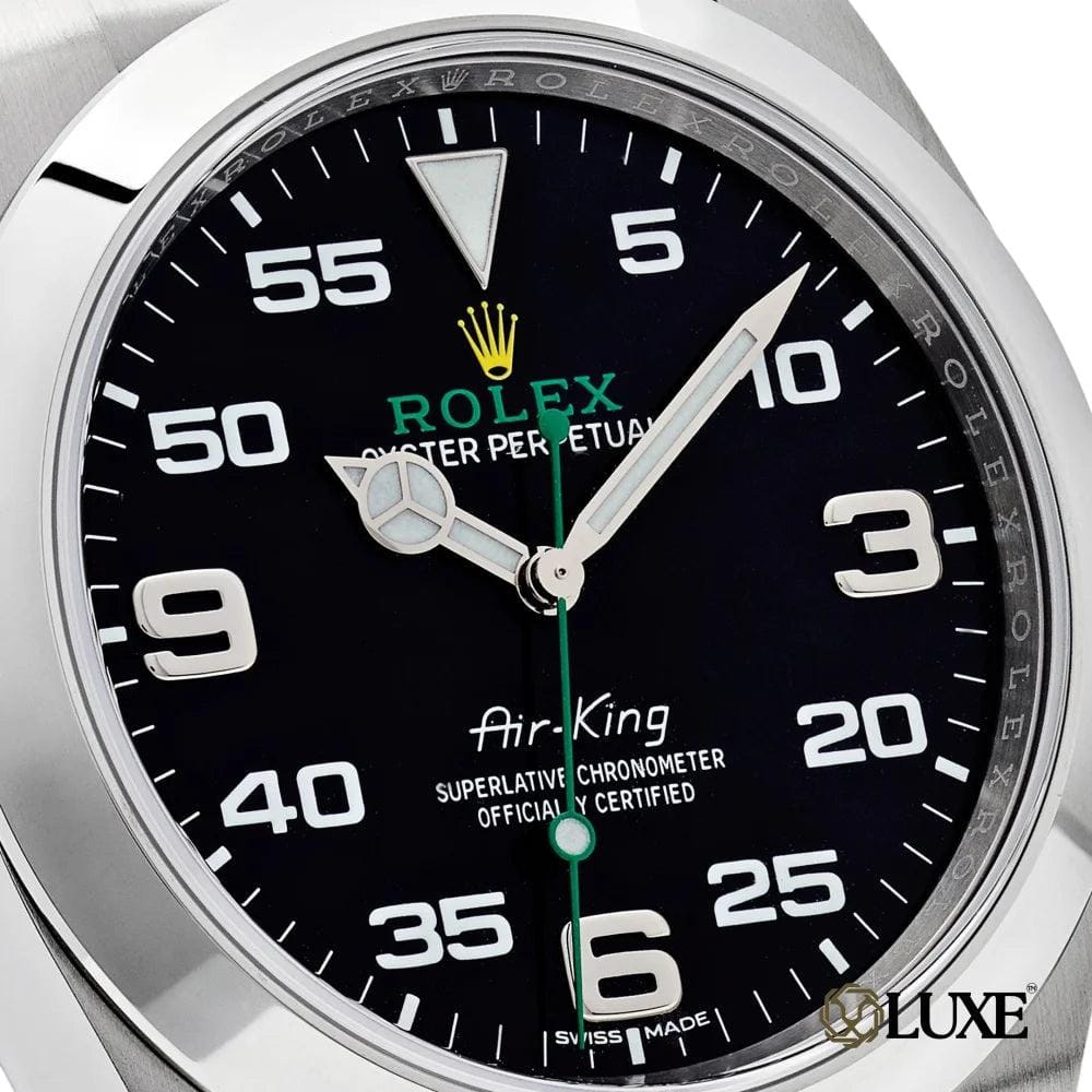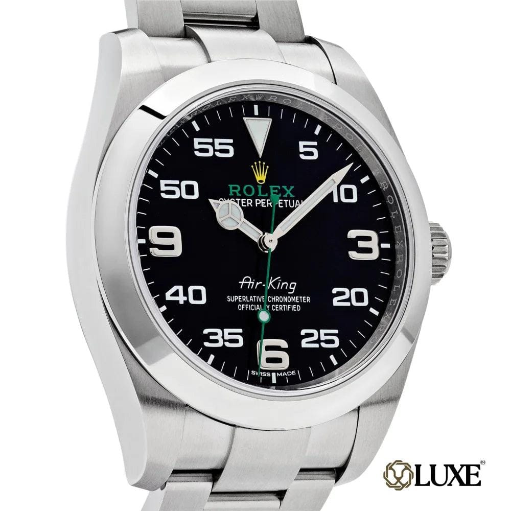 Fabriquée avec un boîtier de 40 mm en Oystersteel, un bracelet Oyster à maillons solides et un fermoir Oyster, l’Air-King perpétue l’héritage aéronautique de la Rolex Oyster originale.